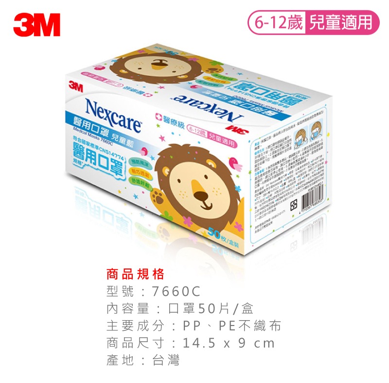 【3M】Nexcare 7660C 兒童醫用口罩 藍色 (50片/盒)